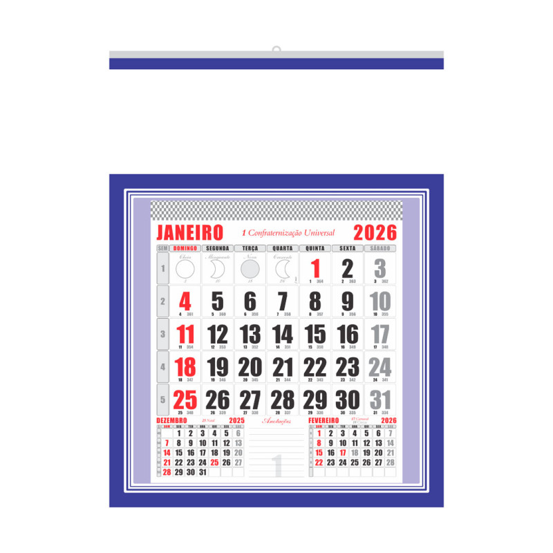 Folhinha Comercial Grande Azul Com Furo ou Vareta.