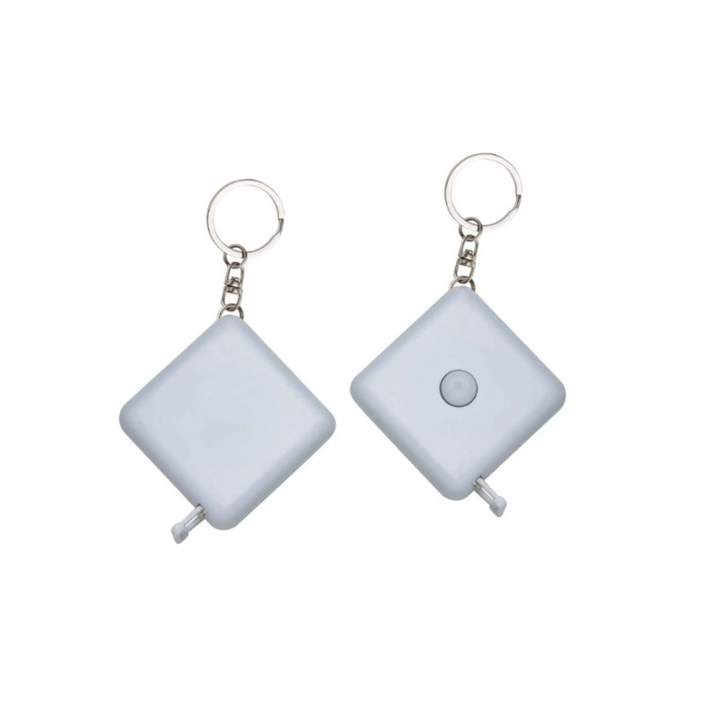 Fita métrica em plástico com formato quadrangular. Conta com fita flexível em PVC e fibra de vidro com marcação dupla face, puxador de plástico na ponta e alcance máximo de 1 metro. Conta com botão de retração automática da fita em um único acionamento e argola metálica.