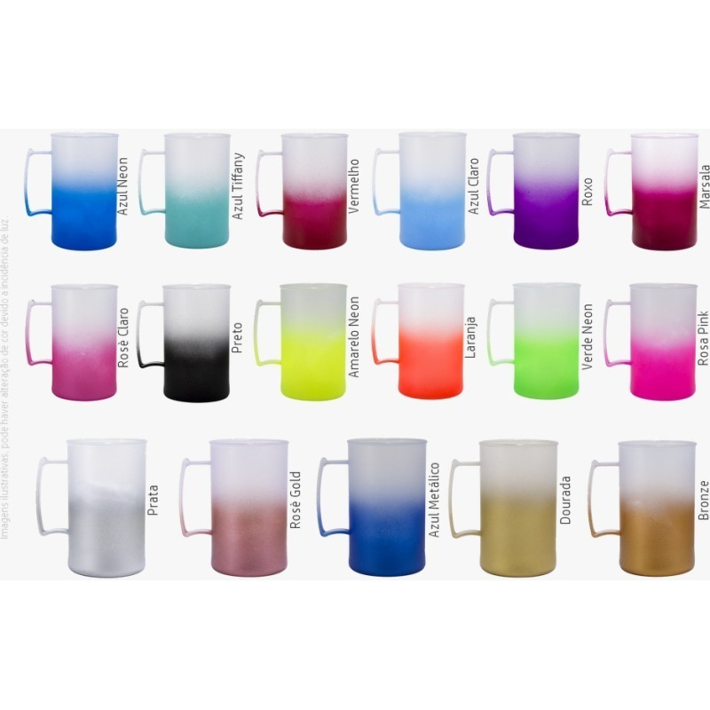 Caneca acrílica em degradê capacidade de 300ML e 450ML.
